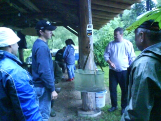 Mit Spannung verfolgten die Teilnehmer das Abwiegen der gefangenen Fische