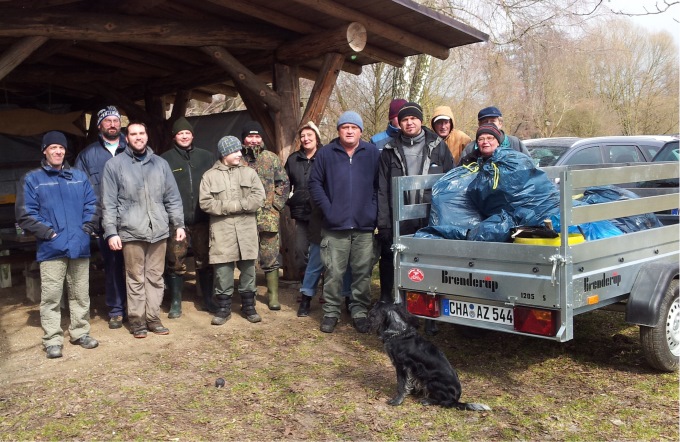 Anglerfreunde reinigten UferBei trockenem Frühlingswetter trafen sich am Samstagvormittag 14 Mitglieder der Arnschwanger Anglerfreunde und 3 Umweltbewuste Bürger zum Uferreinigen am Grillplatz. Nach Besprechung der Vorgehensweise machten sich die Mitglieder auf den Weg, um beide Uferseiten vom Müll zu säubern. An die 8 km Uferlänge wurde gereinigt. Gesammelt wurden 11 Säcke Kleinmüll wie z.B. Flaschen, Dosen, Kunststoffbehälter, Folien usw. und 5 Teile größerer Sperrmüll,darunter ein Note-Book. Drei vom Biber gefällte Bäume wurden zu Brennholz verarbeitet. Nach getaner Arbeit ließ man sich das von Rudolf Schönberger sen. im holzbefeuerten Kessel deftig zubereitete Chili con Carne schmecken. Der gesammelte Müll wurde über den Gemeindebauhof entsorgt. |