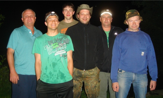 Matthias Christl siegt beim NachtangelnBei sommerlichen Temperaturen konnten die Anglerfreunde am vergangenen Samstag beim alljährlichen Nachtangeln zahlreiche Fänge verbuchen. 13 Teilnehmer, darunter 1 Jungfischer, begaben sich um 19:00 Uhr auf ihre Angelplätze. Gegen 15:00 Uhr traf man sich bereits beim Grillplatz zum kulinarischen Teil mit Grillfleisch, Kaffee und Kuchen. Sieger des Nachtangelns wurde Matthias Christl mit einem Gesamtgewicht von 4340g (3 Brachsen, 1 Aitel) dicht gefolgt von Armin Steinhofer mit insgesamt 4180g (1 Karpfen, 2 Brachsen ). Auf den weiteren Plätzen folgten Reinhold Buchinger mit 4020g (1 Karpfen, 1 Aitel), Achim Köther mit 2300g (4 Brachsen), Josef Bierl (1 Hecht, 1 Rotauge), Daniel Konadl (600g – 1 Brachse, 2 Rotaugen) und Thomas Konadl mit einem 180 g schweren Rotauge. Vorstand Thomas Konadl nahm die Siegerehrung vor und gratulierte hierbei den erfolgreichen Petrijüngern zu ihren Fängen. Die Sieger wurden von ihm mit Punktekarten ausgezeichnet. Die Sieger des Nachtfischens mit Gesamtsieger Matthias Christl (3.v.links) und Vorstand Thomas Konadl (links)