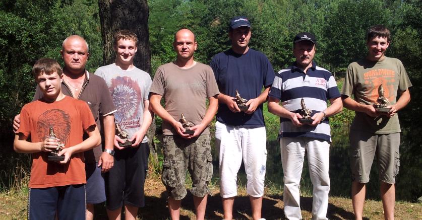 Matthias Christl Fischerkönig - Felix Konadl JungfischerkönigAm vergangenen Samstag und Sonntag fand das Königsfischen der Anglerfreunde statt. Fischerkönig 2013 wurde Matthias Christl mit einem 3800 g schweren Karpfen , 1. Ritter Reinhold Christl, (Karpfen 3320g) und 2. Ritter Martin Ziegler und Stefan Enderlein mit jeweils einem Karpfen von 2620g. Auf den weiteren Plätzen folgten Alois Weißthanner (Karpfen 2500g), Holger Malz (Karpfen 2300g), Reinhold Buchinger (Döbel 1980g), Daniel Konadl (Karpfen 1940g), Alfons Vogl ( Brachse 1360g). Stefan Buchinger, (Brachse 1120g), Armin Steinhofer, (Brachse 980g) und Max Bindl, (Brachse 900g). Insgesamt nahmen 18 Altfischer teil. Bei den Jungfischer wurde Felix Konadl mit einer Brachse von 760g Jugendfischerkönig, 1. Ritter mit einer Brachse von 160g Marco Schönberger. Insgesamt beteiligten sich 2 Jungfischer am Königsfischen. Vorstand Thomas Konadl dankte für die Teilnahme, gratulierte den Siegern und überreichte die Preise. Die Sieger des Königsfischens 2013 der Anglerfreunde. Jugendfischerkönig Felix Konadl, 1. Vorstand Thomas Konadl, 1. Jugendritter Marco Schönberger, die beiden 2. Ritter Martin Ziegler und Stefan Enderlein, 1. Ritter Reinhold Christl und Fischerkönig 2013 Matthias Christl. (von links nach rechts)