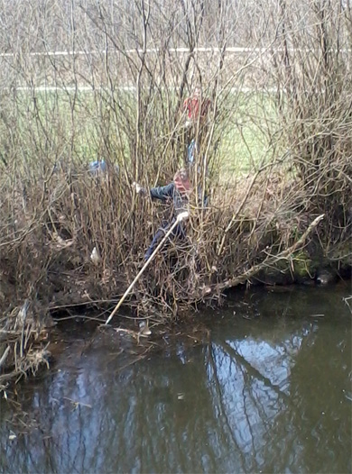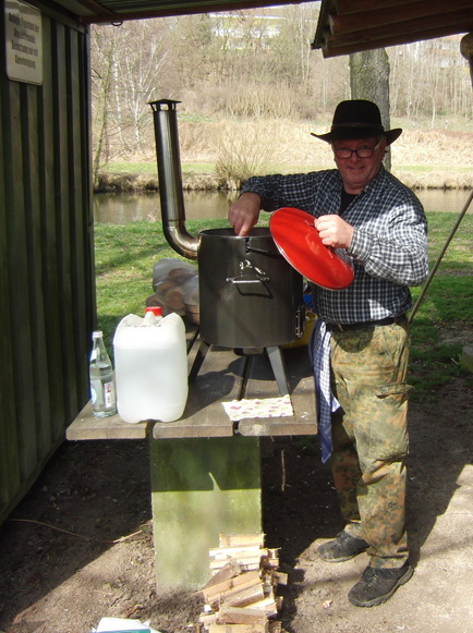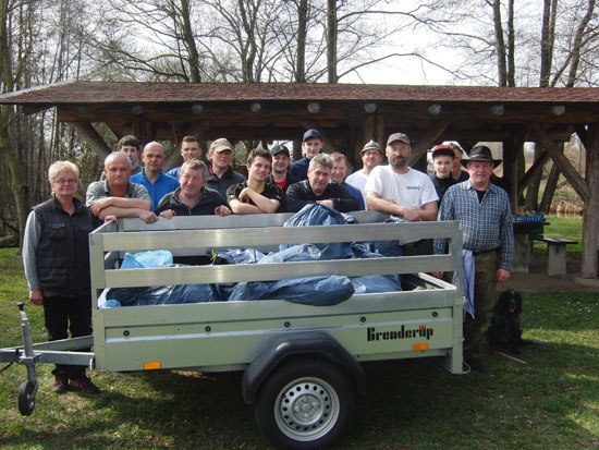 Anglerfreunde Arnschwang reinigen VereinsgewässerBei sonnigem Frühlingswetter trafen sich am Samstagvormittag 17 Mitglieder der Arnschwanger Anglerfreunde und zwei Umweltbewuste Gemeindebürger zum Uferreinigen am Grillplatz. Nach Besprechung der Vorgehensweise machten sich die Mitglieder auf den Weg, um beide Uferseiten vom Müll zu säubern, so dass circa acht Kilometer Uferlänge von jeglichem Unrat gereinigt wurden. Ebenso wurden angespülte Äste mit dem Boot aus dem Gewässer entfernt. Gesammelt wurden 15 Säcke Kleinmüll wie zum Beispiel Flaschen, Dosen, Kunststoffbehälter und Folien. Erfreulicherweise wurden aber bis auf den Fangbehälter eines Rasenmähers keine größeren Sperrmüllteile gefunden. Parallel dazu wurde für das Holzlager am Grillplatz die Überdachung erneuert. Nach der Arbeit ließ man sich das von Rudolf Schönberger (sen.) im holzbefeuerten Kessel deftig zubereitete Chili con Carne schmecken. Der gesammelte Müll wurde über den Gemeindebauhof entsorgt. Die fleisigen Helfer mit Vorstand Thomas Koandl (zweiter von links) Bootsmanschaft und Landungspersonal Matthias Christl, Thomas Christl und Jürgen Leist bei der Überdachungsreperatur Teilweise bis in die letzten Ritzen - Inge Konadl-Pollesche und Einsatz bis kurz vorm Wassersturz - Alois Weißthanner Rudi Schönberger Senior bei der Chilli Zubereitung |