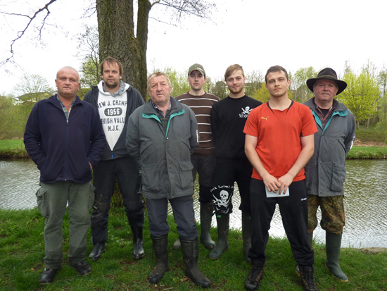Holger Malz Sieger beim AnfischenDie Anglerfreunde Arnschwang konnten am Sonntag mit ihrem ersten Wettbewerb, dem Anfischen, in die neue Saison starten. Nach der Auslosung der Gewässerabschnitte gingen 15 Altfischer an den Start. Gegen 11.00 Uhr traf man sich nach dem Abwiegen beim Grillplatz. Karpfen, Brachsen und Schleien wurden gefangen. Als Sieger ging schließlich Holger Malz mit 5360 g (3 Brachsen und 1 Karpfen) hervor. Auf den nächsten Plätzen folgten Stefan Buchinger ( 4500 g – Karpfen), Matthias Christl (3860 – Karpfen), Daniel Konadl ( 2760 g – 2 Karpfen), Rudi Schönberger sen. (2740 g), Thomas Konadl und Alois Weißthanner mit je 1100g - Brachse. Vorstand Thomas Konadl nahm die Siegerehrung vor und gratulierte zu den Erfolgen. Die Sieger wurden von ihm mit Punktekarten ausgezeichnet. Im Anschluss saß man noch in geselliger Runde bei Grillfleisch und Getränken gemütlich am Grillplatz zusammen. Vorstand Thomas Konadl (links) zeichnete die Sieger des Anfischens aus. Holger Malz, Alois Weißthanner, Matthias Christl, Stefan Buchinger, Daniel Konadl und Rudi Schönberger sen. (von links nach rechts) Gewässerwart Matthias Christl beim abwiegen |