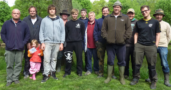 Die erfolgreichen Teilnehmer des Hegefischens mit Vorstand Thomas Konadl (links) und dem Sieger Holger Malz (2.v.links) |