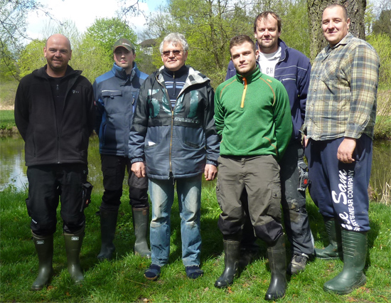 Sven Schmitter Sieger beim AnfischenDie Anglerfreunde Arnschwang konnten am Sonntag mit ihrem ersten Wettbewerb, dem Anfischen, in die neue Saison starten. Nach der Auslosung der Gewässerabschnitte gingen 14 Altfischer und 2 Jungfischer bei ziemlich kühler Witterung an den Start. Gegen 11.00 Uhr traf man sich nach dem Abwiegen beim Grillplatz. Karpfen, Rotaugen und Rotfedern wurden gefangen. Als Sieger ging schließlich Sven Schmitter mit 2160 g (Karpfen, Rotfeder), der sich zum 1. Mal am Preisfischen beteiligte, hervor. Auf den nächsten Plätzen folgten Holger Malz mit 1960 g (Karpfen, Rotauge), Josef Bierl mit 1820 g (Karpfen), Martin Ziegler mit 1580 g (Karpfen), Matthias Christl mit 1380 g (Karpfen), Achim Köther mit 440 g (Rotfeder) und Daniel Konadl mit 340 g (Rotauge). Die beiden Jungfischer gingen leider leer aus. Vorstand Martin Ziegler nahm die Siegerehrung vor und gratulierte zu den Erfolgen. Die Sieger wurden von ihm mit Punktekarten ausgezeichnet. Im Anschluss saß man noch in geselliger Runde bei Grillfleisch und Getränken gemütlich am Grillplatz zusammen. Sieger Sven Schmitter, Holger Malz, Daniel Konadl, Josef Bierl, Matthias Christl und Vorstand Martin Ziegler (von rechts nach links)