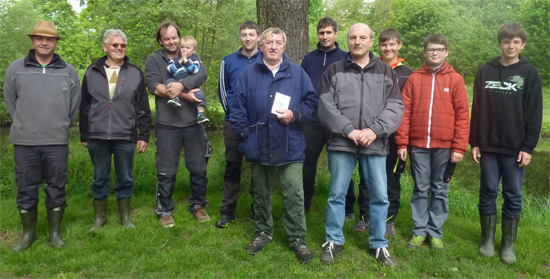 Alois Weißthanner Sieger beim Hegefischen – Sebastian Bierl siegte bei den JungfischernBei angenehmem Frühsommerwetter beteiligten sich 20 Anglerfreunde, 17 Altfischer und 3 Jungfischer, der Anglerfreunde Arnschwang am vergangenen Sonntag am diesjährigen Hegefischen. Bei angenehmen Temperaturen wurden vorwiegend Karpfen aber auch Rotaugen, Brachsen, Schleien und Forellen gefangen. Martin Ziegler, der Vorsitzende der Anglerfreunde nahm am vereinseigenen Grillplatz die Siegerehrung vor. Die Teilnehmer konnten zahlreiche gefangene Fische präsentieren. Sieger des Hegefischens und Gewinner eines Gutscheins mit 40 Punkten für 15820 g (6 Karpfen und 3 Brachsen) wurde Alois Weißthanner. Auf den nächsten Plätzen folgten Matthias Christl (30 Punkte- 9800 g / 5 Karpfen), Holger Malz (25 Punkte - 7200 g / 2 Karpfen, 1 Schleie, 1 Rotauge), Reinhold Christl (20 Punkte – 2 Karpfen), Rudi Schönberger (1 Brachse, 1 Schleie), Josef Bierl (2 Forellen) und Peter Berzl (2 Brachsen). Bei den Jungfischern erhielt Sebastian Bierl als Sieger 30 Punkte – für einen 2740 g schweren Karpfen. Vorsitzender Martin Ziegler gratulierte den Siegern und dankte allen für die zahlreiche Teilnahme. Zudem gab er abschließend bekannt, dass die Anglerfreunde am kommenden Sonntag das Hallenfest der FFW Nößwartling besuchen. Treffpunkt in Nößwartling um 11.00 Uhr im Vereins-T-Shirt. Vorstand Martin Ziegler, Josef Bierl, Holger Malz (3. Platz) , Matthias Christl (2. Sieger), Alois Weißthanner (Sieger), Peter Berzl, Reinhold Christl, sowie die Jungfischer Markus Multerer, Sebastian Bierl (Sieger) und Dominik Peldszus (von links nach rechts) |