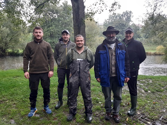Daniel Konadl Sieger beim AbfischenDer Sieger beim diesjährigen Abfischen heißt Daniel Konadl. Mit 11700 g gefangenen Fischen holte er sich souverän den Sieg. 9 Altfischer der Arnschwanger Anglerfreunde nahmen am fünfstündigem Wettkampf, dem Abfischen, der letzten offiziellen Veranstaltung der Saison, teil. Bei Dauerregen und kühler Witterung gingen noch einmal viele Fische an den Haken. Wolfgang Mühlbauer, der Vorstand der Anglerfreunde dankte den Teilnehmern und zeichnete die Sieger mit Punktekarten aus. Den 1. Platz konnte Daniel Konadl mit 3 Karpfen belegen. Auf Platz 2 folgte Simon Schultz mit 4 Schleien und einer Brachse und dem Gesamtgewicht von 5770 Gramm. Platz 3 ging an Sven Schmitter (4600 g und 8 Brachsen). 4. Sieger wurde Matthias Christl mit einem 3000 Gramm Karpfen. Auf den nächsten Platz folgt Wolfgang Mühlbauer (1260 g mit Döbel und Rotauge). Am Grillplatz saß man nach dem Abwiegen in gemütlicher Runde bei Grillfleisch und Getränken zusammen. Foto von Links: Simon Schultz, Matthias Christl, Daniel Konadl, Vorsitzender Mühlbauer Wolfgang, Sven Schmitter. |