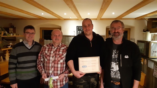 Anglerfreunde Arnschwang ziehen Jahresbilanz - Sven Schmitter und Felix Perlinger Vereinsmeister 2022.Die Anglerfreunde Arnschwang haben am vergangenen Samstag im Gasthof Zur Linde ihre Jahreshauptversammlung abgehalten. Der Verein blickt nach den Coronabeschränkungen wieder auf ein erfolgreiches Vereinsjahr zurück. Vorsitzender Wolfgang Mühlbauer begrüßte die zahlreich erschienenen Mitglieder, Bürgermeister Michael Multerer und den Ehrenvorstand Alois Weißthanner. Man gedachte den verstorbenen Mitgliedern seit der Vereinsgründung. Nach dem Verlesen des Protokolls der vergangenen Jahreshauptversammlung blickte Vorstand Stefan Buchinger in seinem Rechenschaftsbericht auf das abgelaufene Jahr zurück. Der Verein zähle 86 Mitglieder, 60 Aktive, davon 4 Jungfischer. Es gab zwei Neuzugünge und keine Austritte zu verzeichnen. Als Aktivitäten nannte er die JHV 2022 mit den Neuwahlen der gesamten Vorstandschaft. Bei der Uferreinigung und Brennholzaktion an der sich leider nur 8 Mitglieder beteiligten wurden 10 Müllsäcke Kleinmüll gesammelt und wiederum auch eine Menge Brennholz erzeugt. Bei der Dorfmeisterschaft der Eisstockschützen konnte man nur einen enttäuschenden 4. Platz erzielen. Nach dem Anfischen (11 Teilnehmer) im April veranstaltete der Verein das Hegefischen (12 Teilnehmer), das Nachtfischen (14 Teilnehmer) sowie das Abschlußfischen (9 Teilnehmer) im September für die Vereinsmitglieder. Beim zweitägigen Königsfischen, an dem sich 19 Angler beteiligten, siegte bei den Altfischern Sven Schmitter vor Simon Schultz und den dritt Plazierten Stefan Buchinger, bei den Jungfischern siegte Dominik Peldszus vor den Punktgleichen Sebastian Bierl und Felix Perlinger. Zwei Mitglieder beteiligten sich am Landkreiskönigsfischen in Furth im Wald. Mit teils starken Abordnungen wurden die Fischerfeste in Untertraubenbach und Bad Kötzting besucht. Auch beteiligte man sich an den Festen der ortsansässigen Vereine. Nach zweijähriger Pause wurde im Juli wieder das eigene Fischerfest veranstaltet, das sehr gut besucht war und den hervorragenden Zusammenhalt im Verein zeigte. Zum Jahresabschluss mit Fischessen kamen 48 Personen zum Brunner Hof. Mit Informationen vom Landkreisvorständetreffen und anstehenden Terminen schloss Stefan Buchinger seinen Bericht ab. Ein besonderer Dank ging an die Gemeinde Arnschwang für die Unterstützung des Vereines. Kassier Martin Ziegler gab einen detaillierten Kassenbericht. Die Kassenprüfer Thomas Konadl und Reinhold Buchinger bescheinigten eine korrekte Kassenführung. Der Kassier wurde von den Mitgliedern einstimmig entlastet. Gewässerwart Matthias Christl gab folgenden Fischbesatz bekannt 110 kg Bachforellen, 45 kg Regenbogenforellen, 162 kg Schuppen- und Spiegelkarpfen, 42 kg Schleien, 55 Stück Zander, 60 Stück Hechte. Eine Auswertung der Verkauften Tages- und Jahreskarten zeigte auch, dass die Chambangler wiederum sehr erfolgreich waren. So wurden nach Jahren auch wieder mehrere Waller und metrige Hechte gefischt. Ein besonderer Dank ging an Familie Wegscheider, Zenchinger Str.5 für den Verkauf der Erlaubnisscheine. Geräte- und Platzwart Felix Konadl zeigte sich erfreut, das der Grillplatz von allen Mitgliedern sehr ordentlich gehalten wurde und dankte besonders Alois Weißthanner und Rudi Schönberger sen. für die Mithilfe bei der Geräte- und Platzpflege. Bei der anschließenden Aussprache beschlossen die Anglerfreunde, dass der Zeitraum des Nachfischens ausgeweitet wird und bis auf das Anfischen, bei dem die Plätze ausgelost werden, weiterhin für alle Fischen freie Platzwahl besteht. Alfons Vogl bat alle Angler mit dem Kfz nicht bis ans zu Ufer zu fahren. Bei Reinhold Christl bedankte sich Wolfgang Mühlbauer abschließend für den Verkauf der Erlaubnisscheine und die großartige Hilfe beim Fischerfest und überreichte einen Gutschein. Die Auswertung der Vereinsmeisterschaft brachte folgendes Ergebnis. Vereinsmeister bei den Altfischern wurde Sven Schmitter mit 3570 Punkten vor Daniel Konadl (1230) und Stefan Buchinger (1062). Vereinsmeister bei den Jungfischern wurde Felix Perlinger mit 228 Punkten vor Sebastian Bierl (196) und Dominik Pelzus (134). Vorstand Wolfgang Mühlbauer überreichte den Vereinsmeistern je eine Urkunde und gratulierte im Namen des Vereins. Bürgermeister Michael Multerer dankte den Anglerfreunden in seiner Ansprache für ihr großes Engagement und versprach auch weiterhin die Unterstützung der Gemeinde zu. Er zeigte sich erfreut über die zahlreiche Teilnahme an den Vereinsversammlungen, und das nach den Coronabeschränkungen die Angebote der Vereine wieder sehr gut angenommen werden. Michael Multerer gratulierte den Vereinsmeistern zu ihren verdienten Auszeichnungen. Für die Zukunft wünschte er alles Gute. Vorstand Wolfgang Mühlbauer schloss die Jahreshauptversammlung mit der Bitte, dass sich weiterhin alle Mitglieder an den anstehenden Aufgaben beteiligen sollen. Foto von Links: Bürgermeister Michael Multerer; Reinhold Christl; Sven Schmitter; Vorsitzender Mühlbauer Wolfgang |