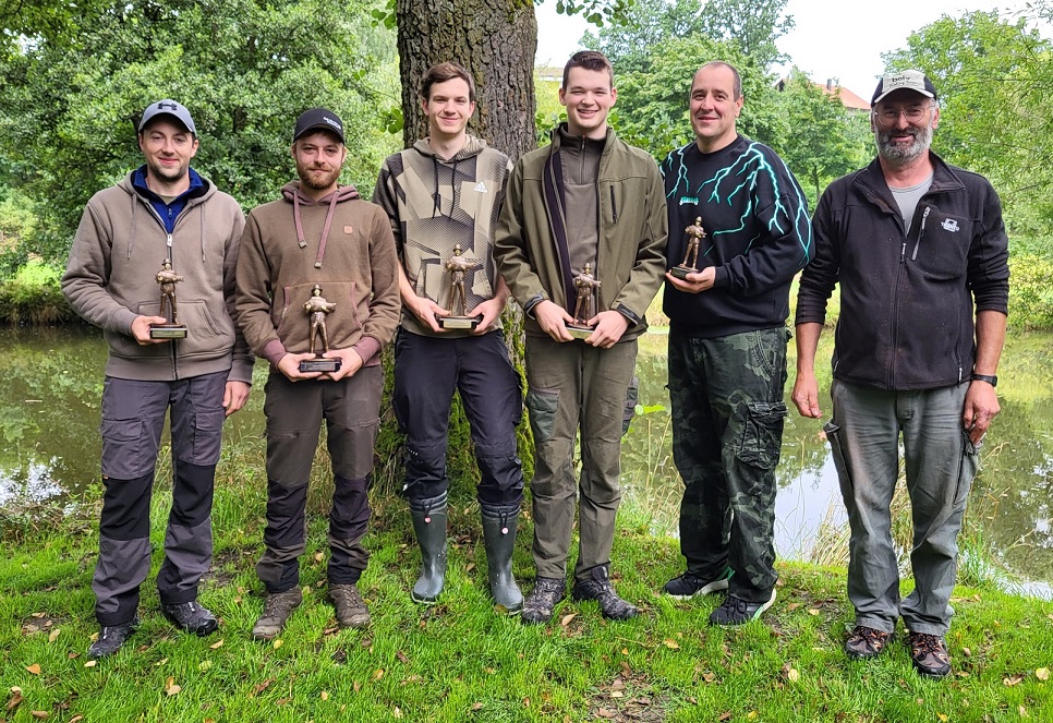 Stefan Buchinger Fischerkönig - Dominik Peldszus wird JungfischerkönigAm Samstag und Sonntag hatten die Anglerfreunde Arnschwang an den Chamb eingeladen um den Fischerkönig 2023 zu ermitteln. Am Samstag zwischen 16.00 und 21.00 Uhr und Sonntag von 5.00 bis 10.00 Uhr fanden sich 18 Angler, darunter drei Jungfischer, ein. Bei regnerischem kühlem Sommerwetter konnten jedoch nur 7 Teilnehmer an dem 2-tägigen Wettbewerb Fänge verbuchen. Karpfen, Schleien und mehrere Brachsen wurden gefangen. Beim Abwiegen dankte Wolfgang Mühlbauer, der 1. Vorsitzende der Anglerfeunde Arnschwang nach dem Wettbewerb für die Teilnahme und gratulierte den Siegern zu Ihrem Erfolg. Die drei ersten Gewinner wurden jeweils mit Pokalen ausgezeichnet. Bei den Altfischern kam es zu folgendem Ergebnis: Stefan Buchinger holte sich mit einem 3500 g schweren Karpfen die Siegertrophäe 2023. Matthias Christl wurde mit einem 2680 g schweren Karpfen 1.Ritter, Sven Schmitter (Brachse 1560 g) 2.Ritter. Auf den nächsten Plätzen folgten Peter Berzl und Andreas Bierl. Jungfischerkönig mit einer 640 g schweren Brachse wurde Dominik Peldszus . 1.Ritter Sebastian Bierl mit einer 480 g Brachse. Bei Grillfleisch, Würstchen vom Grill und erfrischenden Getränken saßen die Anglerfreunde nach und zwischen dem Wettkampf gemütlich am vereinseigenen Grillplatz zusammen und feierten zünftig miteinander. Bild von links: Matthias Christl, Stefan Buchinger, Dominik Pelszus, Sebastian Bierl, Sven Schmitter und Vorsitzender Wolfgang Mühlbauer |