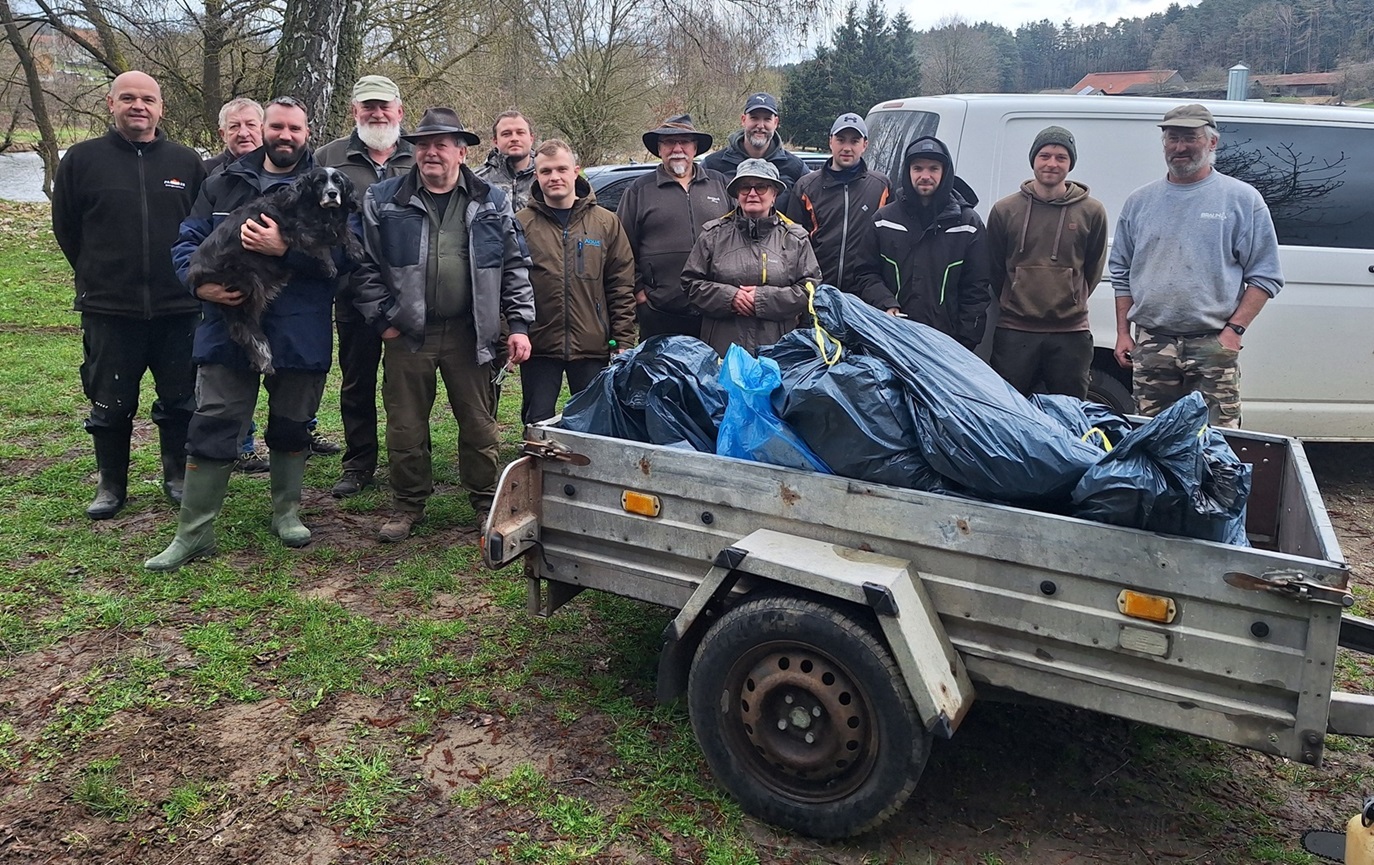 Jährliche Uferreinigung der Gewässer der AnglerfreundeBei wechselhaftem Frühlingswetter trafen sich am Samstagvormittag 16 Mitglieder der Arnschwanger Anglerfreunde zum Uferreinigen am Grillplatz. Nach Besprechung der Vorgehensweise machten sich die Mitglieder auf den Weg, um beide Uferseiten vom Müll zu säubern, so dass circa sieben Kilometer Uferlänge von jeglichem Unrat gereinigt wurden. Die Palette reicht von weggeworfenen Flaschen, Dosen und Plastikabfällen bis hin zu leeren Ölkanistern und leider auch Unrat von nicht umweltbewussten Anglern. Gesammelt wurden 11 Säcke Kleinmüll, erfreulicherweise wurden keine größeren Sperrmüllteile gefunden. Parallel dazu wurde für das Holzlager am Grillplatz eine beachtliche Menge Brennholz erarbeitet. Nach der mehrstündigen Arbeit ließ man sich das von Rudolf Schönberger (sen.) im holzbefeuerten Kessel deftig zubereitete Chili con Carne schmecken. Dank auch an die Gemeinde Arnschwang die immer den gesammelten Müll kostenlos entsorgt. Die fleißigen Helfer der Uferreinigung 2024 |