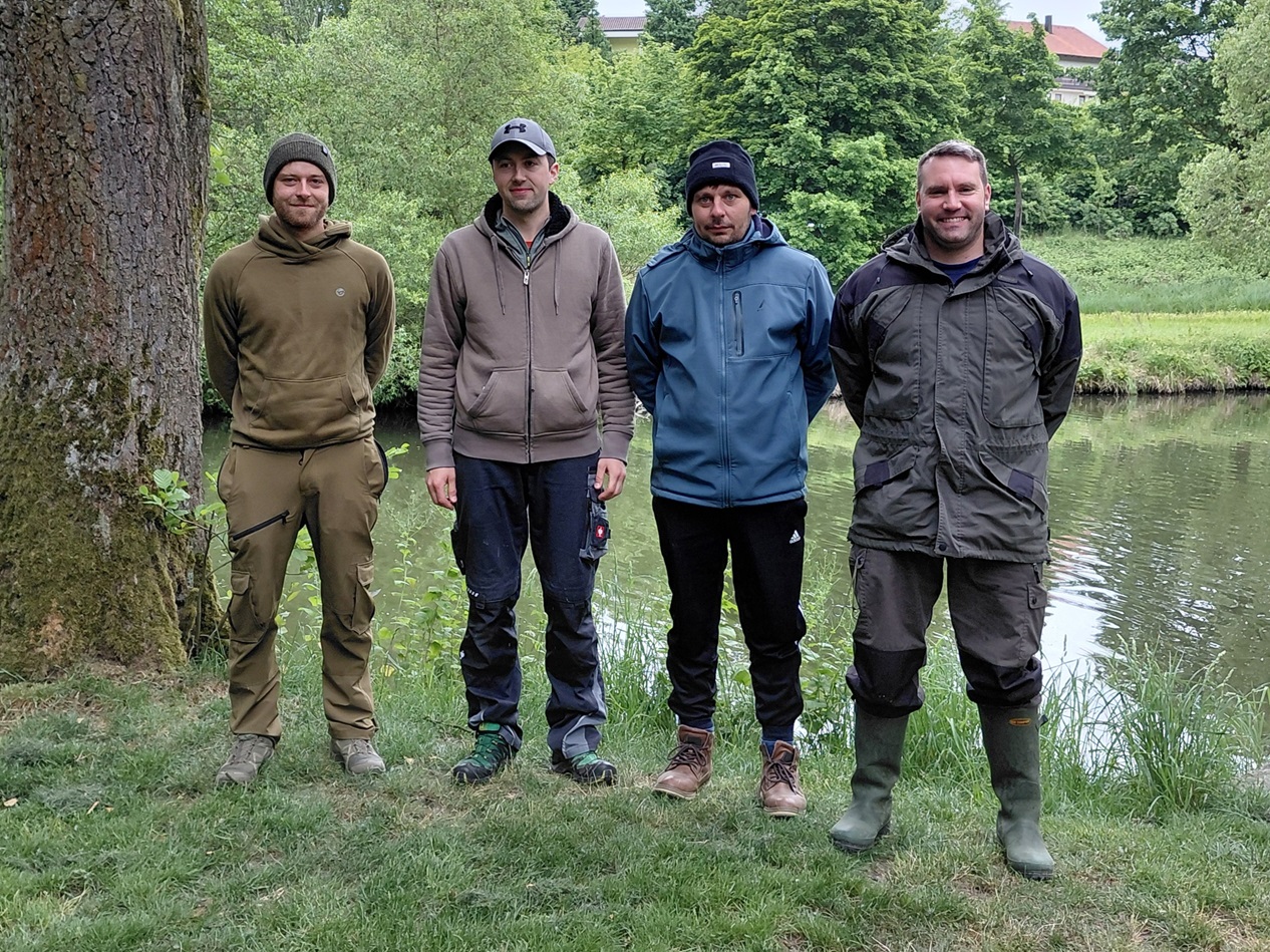 Christl Matthias Sieger beim Hegefischen der Anglerfreunde Arnschwang12 aktive Mitglieder, darunter ein Jungfischer der Anglerfreunde Arnschwang beteiligten sich am vergangenen Sonntag von 5 Uhr bis 10.00 Uhr am diesjährigen Hegefischen. Die Angler trotzen dem bewölktem und kaltem Wetter und wurden mit Karpfen, Brachsen und einem Giebel belohnt. Stefan Buchinger, der Vorsitzende der Anglerfreunde, nahm am Grillplatz die Siegerehrung vor. Sieger des Hegefischens mit insgesamt 7720 g wurde bei den Altfischern Matthias Christl. Auf den nächsten Plätzen folgten Schönberger Rudi jun. mit 3180 g und Schlecht Christan mit 920 g. Vorstand Stefan Buchinger gratulierte den Siegern und dankte allen für die Teilnahme und wies auf anstehende Termine hin. Im Anschluss wärmten sich alle Teilnehmer mit Grillfleisch, Würstchen und Getränken am Grillplatz auf. v.l: Vorstand Stefan Buchinger, Matthias Christl, Christian Schlecht und Rudi Schönberger(jun.) |